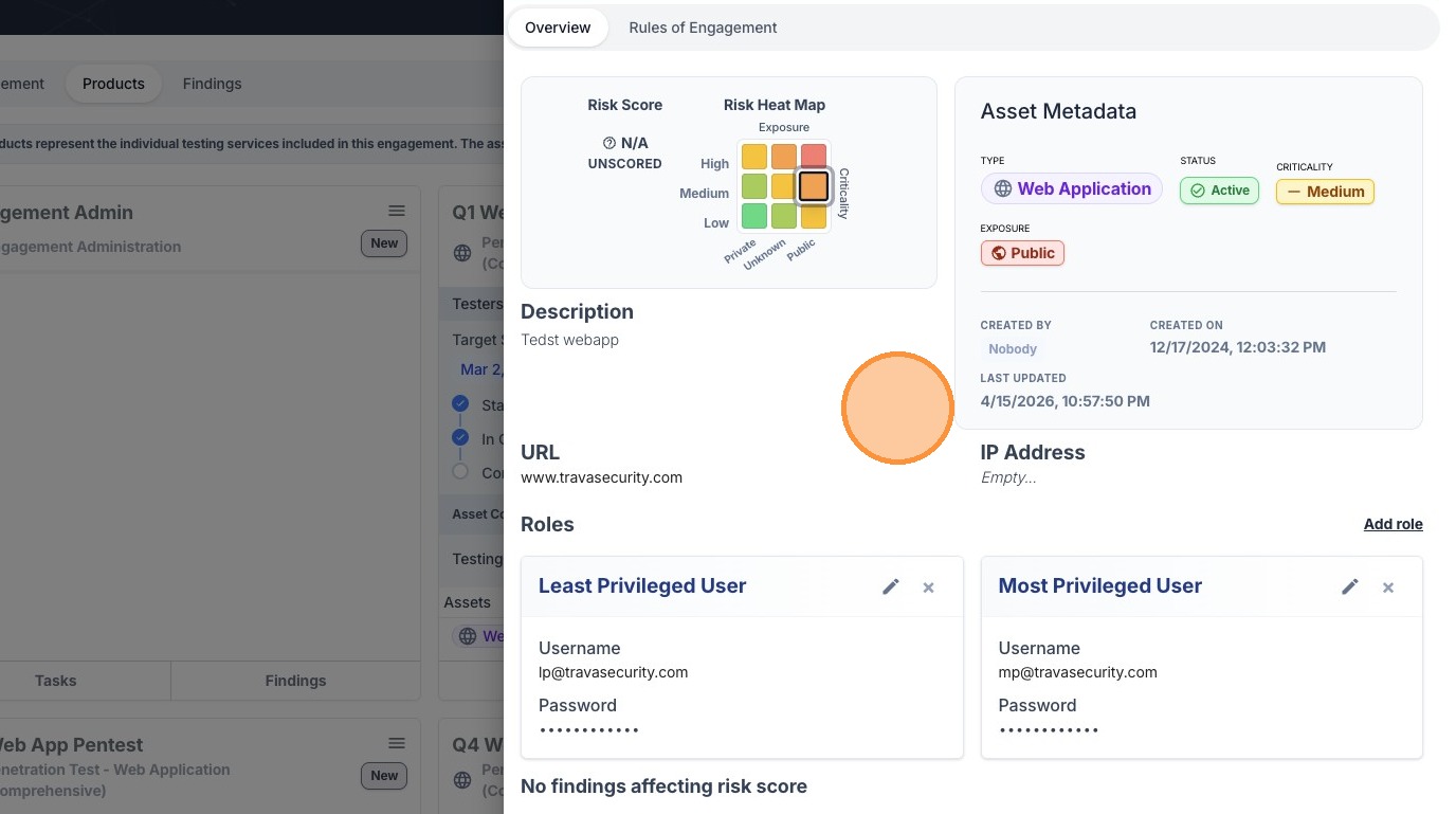 15. The Asset Details drawer show even more detailed information about the asset, as well as attached credentials for testing.