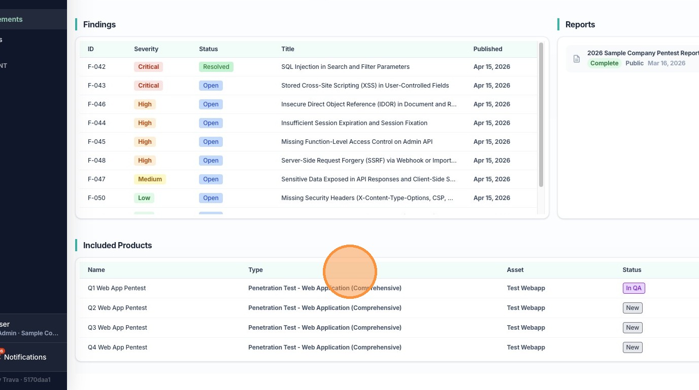 11. Lastly, in the Included Products section, you can see all the test types included in this engagement.